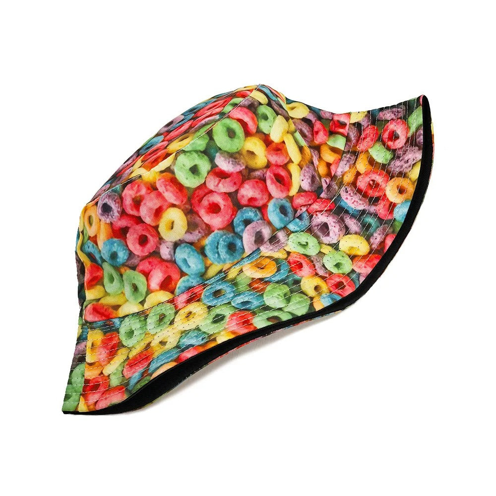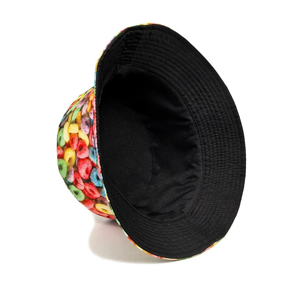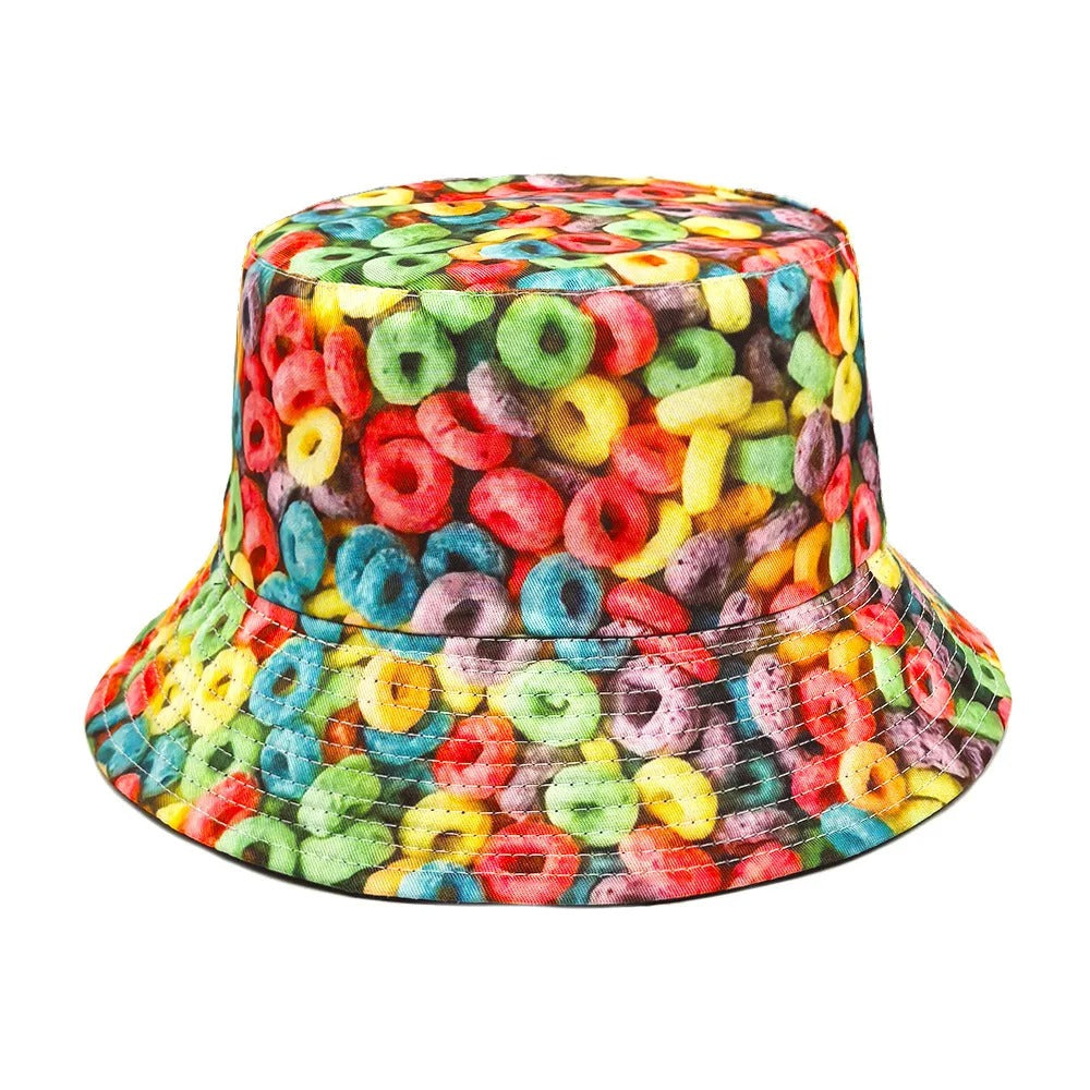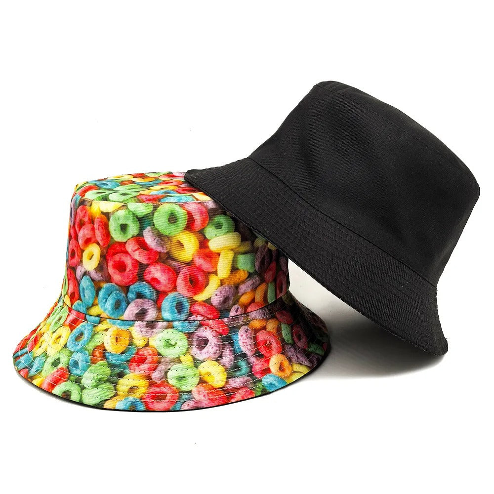 Donut Pattern Bucket Hat Cartoon Graffiti Printing Fisherman Hats Double Sides Panama Cap Men Women Sun Sunscreen Outdoor