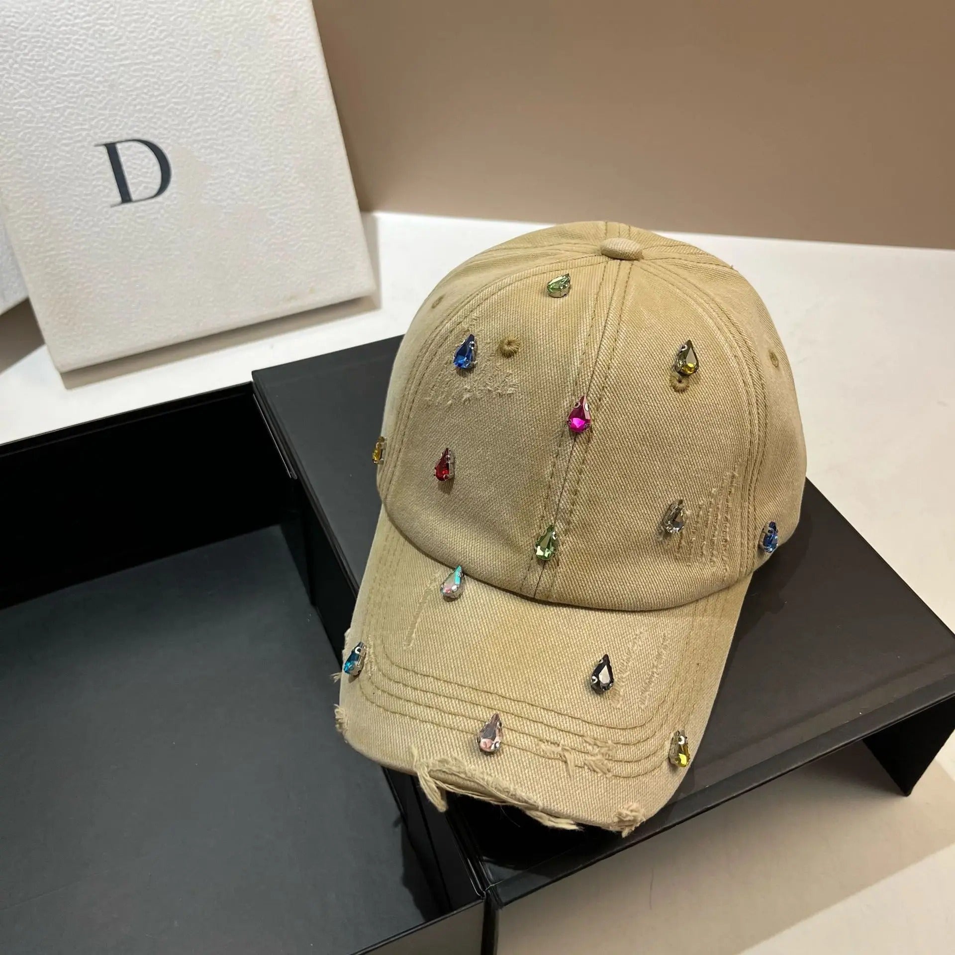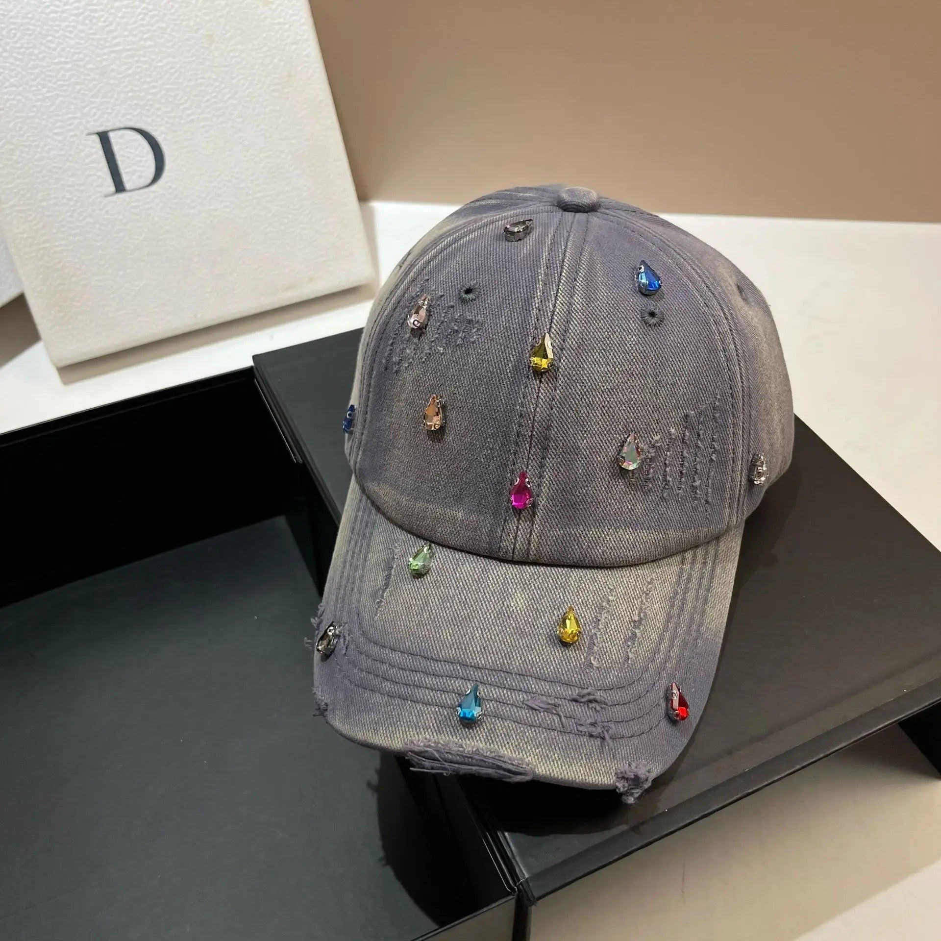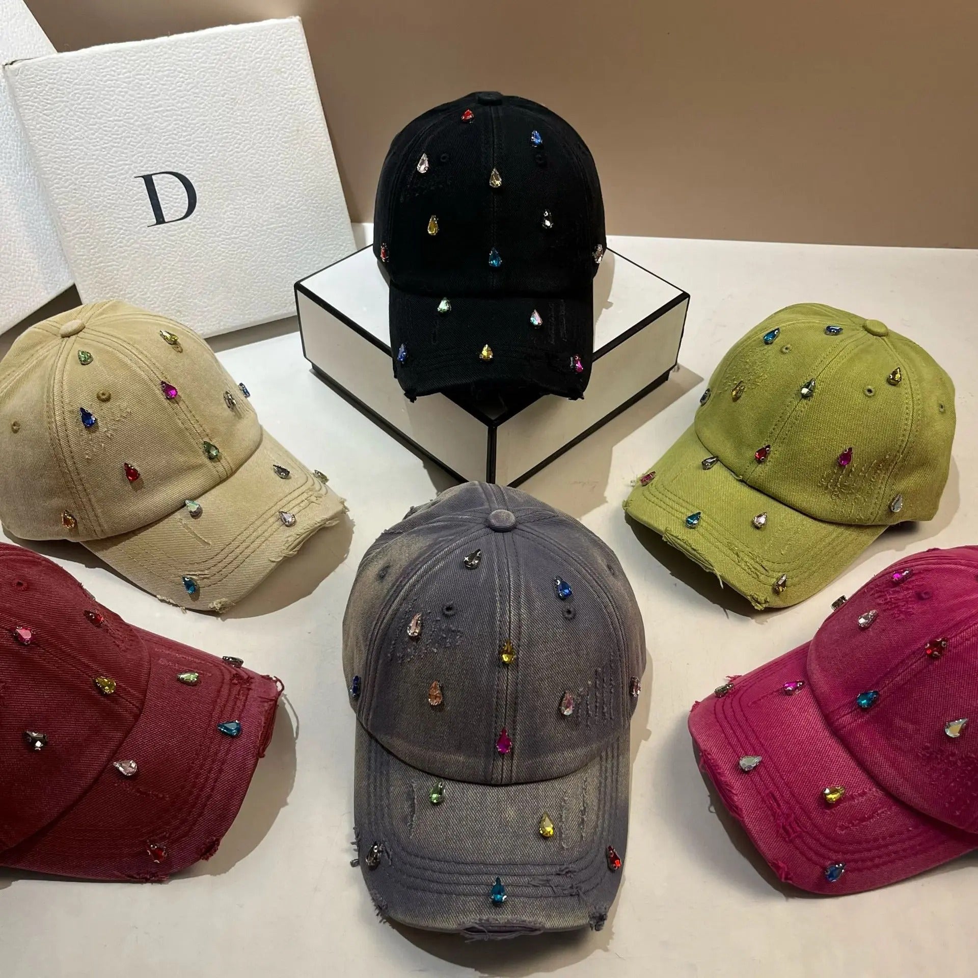 Luxury Water Diamond Baseball Cap Design Sun Hat American Youth Personalized Water Washed Punched Baseball Hat Trend