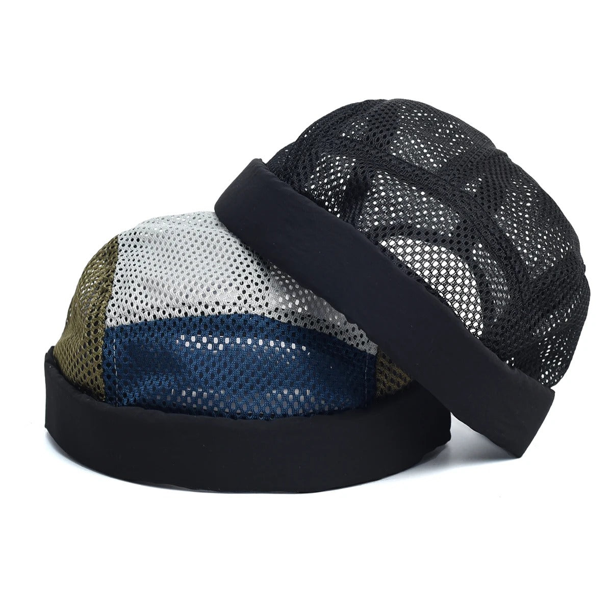 Men's Brimless Docker Hat Summer Breathable Mesh Net Beanie Cap Rolled Cuff Harbour Hats Sailor Fisherman Landlord Hat