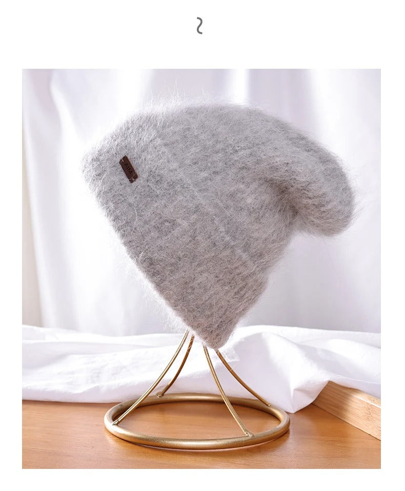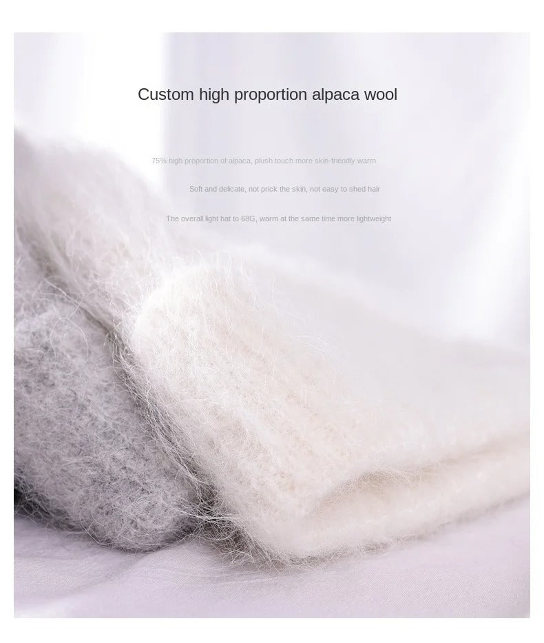 New High Quality Alpaca Wool Beanies for Women Warm Soft Cute Plush Winter Hat White Thickened Protection Knit Hat