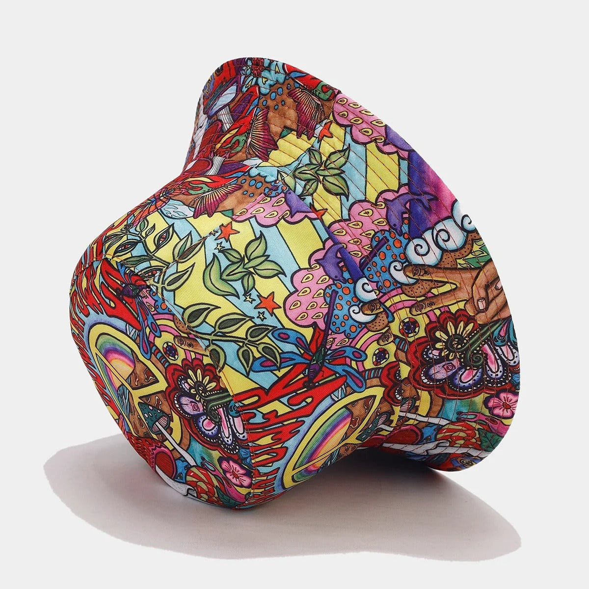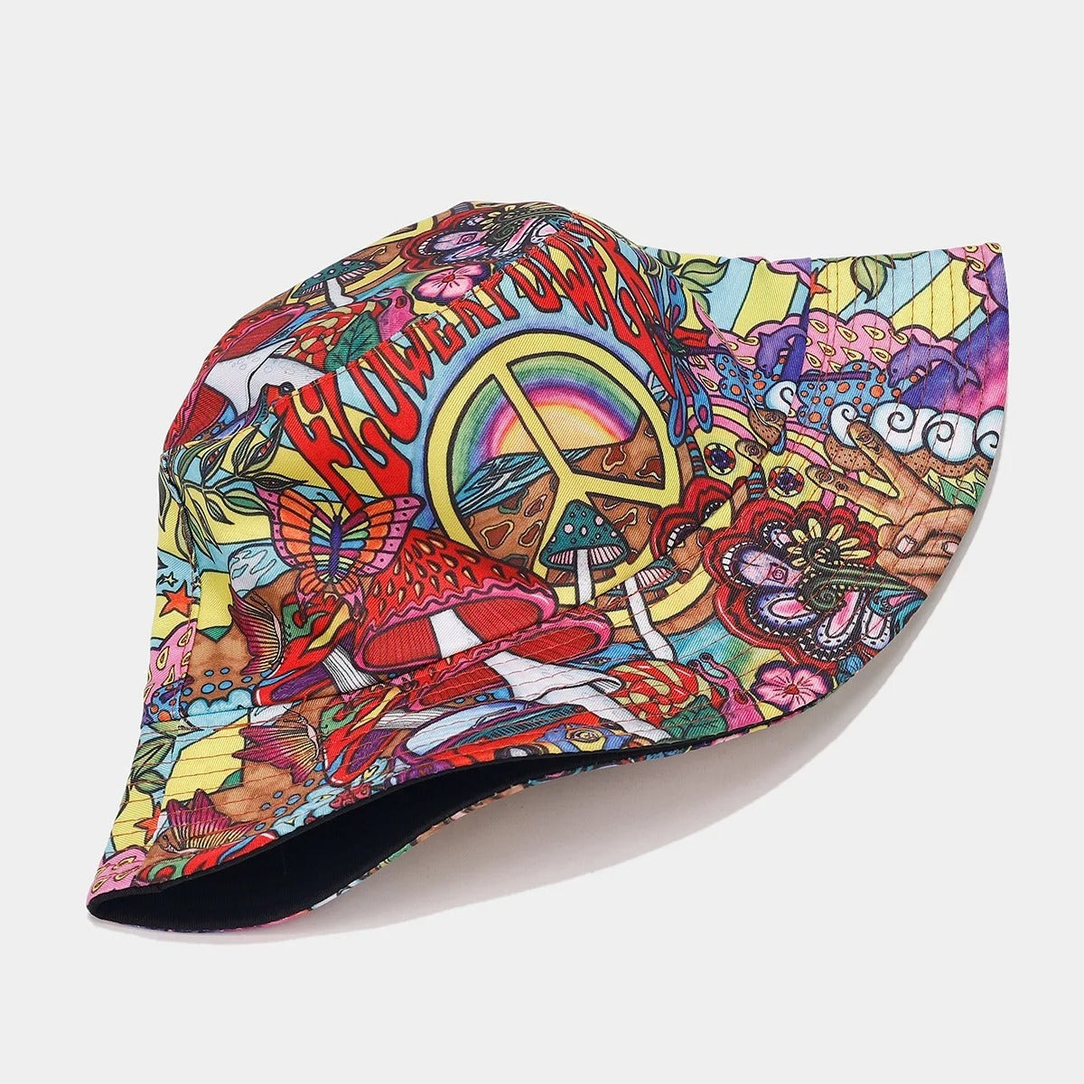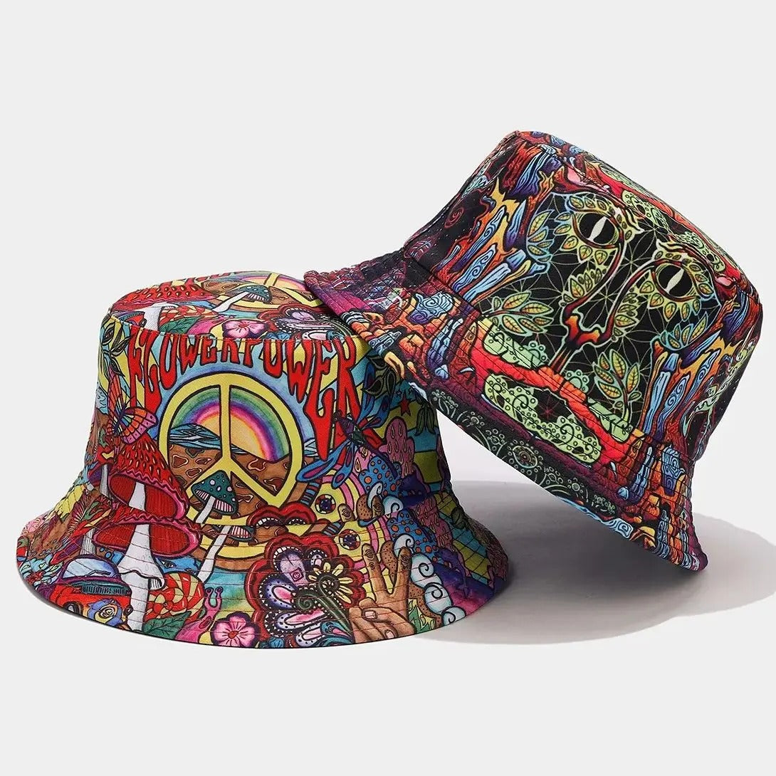 Summer Sun Protection Bucket Hat for Men Women Panama Cap Print Hip Hop Gorros Fishing Fisherman Hat Double Side Wear Fashion